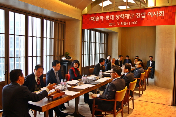 5일 개최된 창립이사회에는 롯데, 송파구 지역 대표 등 각계에서 구성된 이사진들이 참여해 설립취지문 채택, 정관심의, 이사장 선출 등 장학재단 설립을 위한 안건을 심의 의결했으며, 이사장으로 윤종윤 유아이그룹 회장이 선출됐다.