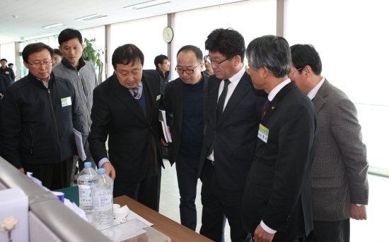 [천지일보 나주=이진욱 기자] 5일 오전 강인규 나주시장이 최근 혁신도시 LH 아파트에서 발생한 ‘탁수 수돗물’과 관련, 정확한 원인 규명과 사고 재발방지를 당부키 위해 LH 공사 혁신도시 홍보관을 찾았다.