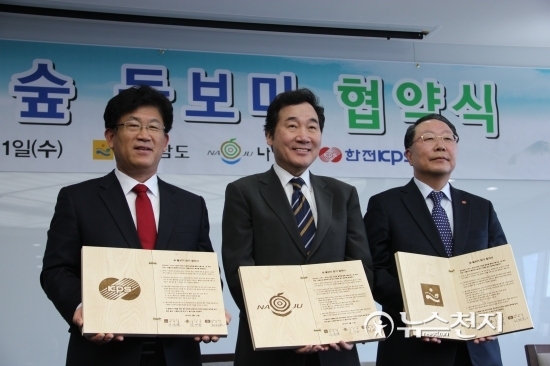 이 행사는 11일 오전 10시 한전KPS 대회의실에서 이낙연 전남도지사, 강인규 나주시장, 최외근 한전KPS 사장의 ‘배메산 숲 돌보미 협약식’을 시작으로 진행됐다.