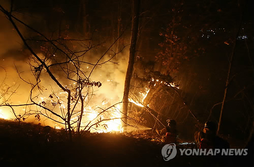 [천지일보=김민아 기자] 밤늦게 불암산에서 발생한 화재로 축구장 3배에 달하는 임야가 소실됐다. 13일 오후 10시 57분께 서울 노원구 중계동 불암산 중턱에 있는 학도암 인근에서 발생한 불이 임야 1만 5000㎡를 태우고 3시간 18분 만에 진화됐다.