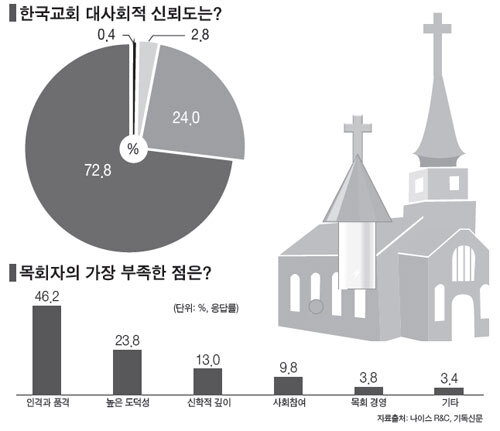 목회자 10명 중 7명 “한국교회 신뢰도 낮아… ”