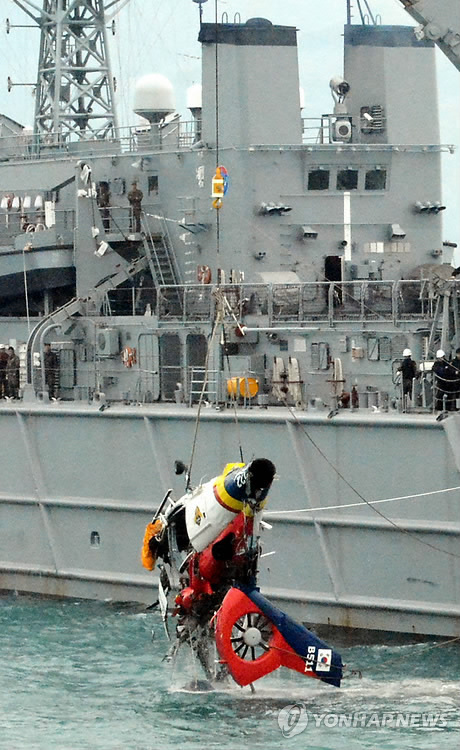 추락헬기 동체는 사고발생 6일 만인 지난 19일 오후 가거도 방파제 끝단 남쪽 방향 1200m 지점 해저에서 발견됐다.