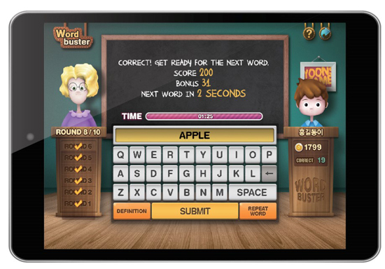 특히 친구들과 실시간 경쟁을 통해 랭킹을 획득하는 방식이어서 아이들은 좋아하는 게임을 하며 재미있게 어휘 실력을 쌓을 수 있고, 전체 랭킹 순위로 자신의 영단어 실력이 어느 정도인지 가늠해볼 수 있다.
