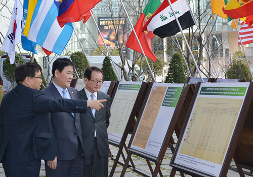 [천지일보=홍란희 기자] 최경환 경제부총리가 (사)월드피스자유연합(이사장 안재철)이 부산에 마련한 6.25전쟁 당시 중남미 국가의 지원 사진전을 지난 28일 찾았다.