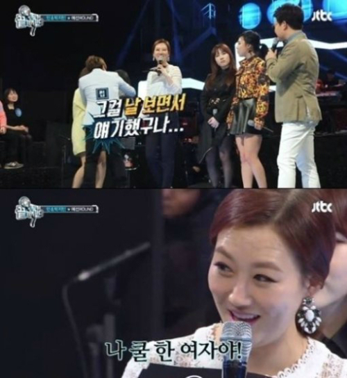 이에 문희준은 황급히 선곡단을 말렸으나 장윤정은 “그걸 날 보면서 얘기했구나. 뭐 어때, 나 쿨하다”고 말해 웃음을 자아냈다.