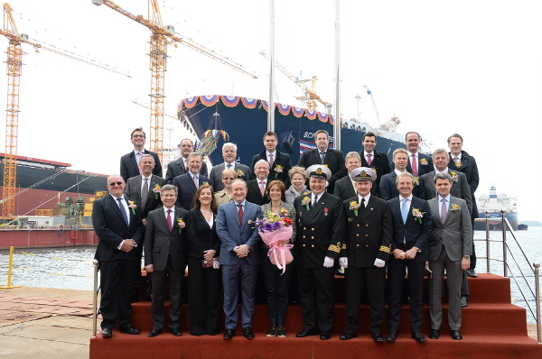 이날 명명식에는 러시아 세르게이 프랭크 소브콤플로트 사장, 마틴 웨츨라 로열 더치 셸 부사장, 영국 선급 Lloyd’s Register의 리차드 새들러 사장, 크리스 거너 로열 더치 셸 코리아 대표이사, 정성립 STX조선해양 사장 등이 참석해 소브콤플로트 LNG선 프로젝트의 성공적인 마무리를 축하했다.
