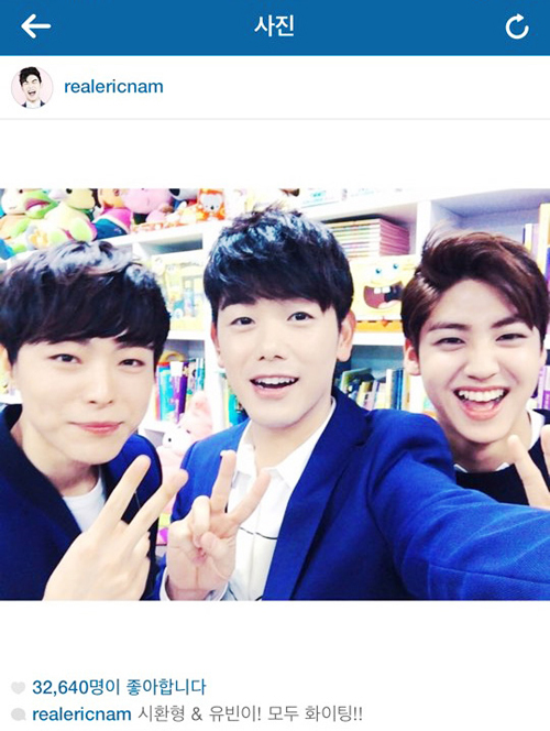 지난 7일 에릭남이 송유빈, 박시환과 함께 SBS MTV ‘더 쇼’ 대기실에서 촬영한 훈훈한 사진을 공개했다.