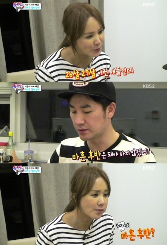 이날 엄태웅은 식사를 하던 도중 엄정화에게 “호주에는 좋은 남자가 없었느냐”고 물었고, 이에 엄정화는 “26~27세 남자들만 있더라. 그래도 괜찮아?”라고 말했다.