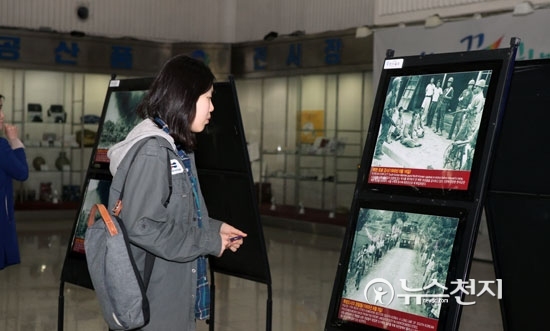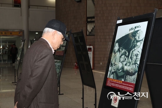 천지일보는 13일부터 18일까지 인천광역시청 로비에서 광복·분단 70주년 순회전시 ‘미국 종군기자가 본 한국전쟁 6.25’를 인천시와 공동주최 중에 있다. 전시는 문화체육관광부, 문화유산국민신탁, 국제언론인연합회가 후원하며 동아오츠카, 배설선생기념사업회, 학부모총연합회, 이봉창의사생가복원추진위원회가 협찬한다.