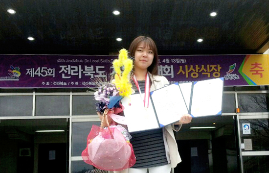 [천지일보=최유라 기자] 원광보건대학교(총장 김인종) 허브테라피향장과 최현지 학생이 ‘2015년 제45회 전라북도 기능경기대회’에서 금메달을 수상했다.