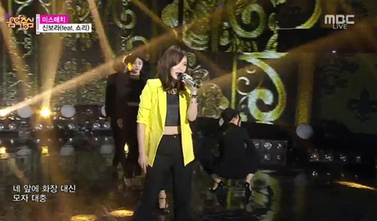 이날 음악중심 무대에서 신보라는 개그맨이라는 이미지를 벗고 폭발적인 가창력으로 시청자들을 사로잡았다.