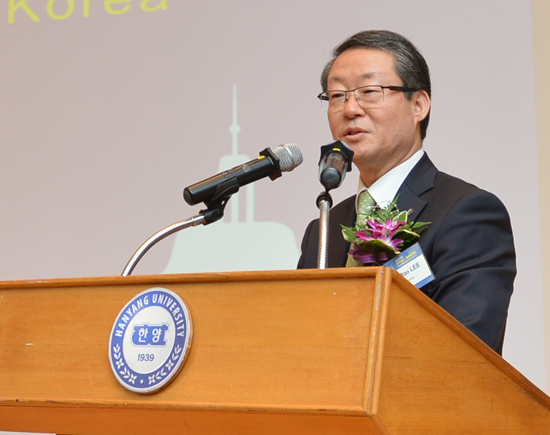 ▲ 이영무 한양대 총장이 21일 서울 성동구 HIT빌딩에서 열린 ‘2015 한-스웨덴 세미나’에서 축사를 하고 있다. (사진제공: 한양대)