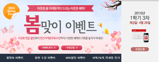 4월 28일 개강하는 1학기 3차 강좌와 다양한 이벤트에 대한 자세한 내용은 미래원격평생교육원 홈페이지에서 확인 가능하다.