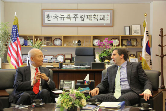 리퍼트 대사는 한국뉴욕주립대학교가 위치한 인천글로벌캠퍼스를 관심 있게 둘러본 후, 간담회에 앞서 김춘호 한국뉴욕주립대 총장과의 대화에서 “인천글로벌캠퍼스는 굉장히 독특한 시스템으로, 매우 흥미롭다”고 말했다.