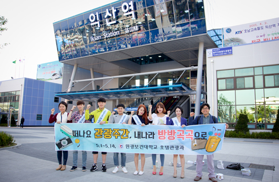원광보건대학교 호텔관광과의 교수와 학생 대표 7명은 봄 관광주간을 맞아 4월 27일, 5월 8일 이틀간 KTX를 이용하는 관광객과 도내 거주민을 대상으로 관광주간 및 전라북도 대표 관광지를 소개하는 홍보 캠페인 활동을 벌였다.