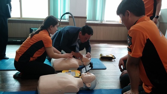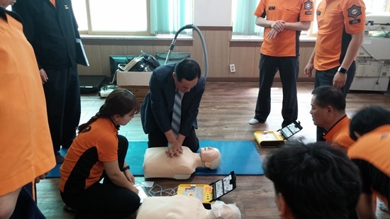 [천지일보 순천=김미정 기자] 순천소방서(서장 박경수) 현장대응단이 지난 12일 1층 심폐소생술 체험장에서 펌뷸런스 대원들을 대상으로 응급처치 교육을 시행했다.