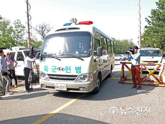 ▲ 13일 총기 사고가 발생한 서울 서초구 내곡동 예비군훈련장으로 육군 헌병 차량이 들어가고 있다. ⓒ천지일보(뉴스천지) [천지일보=이혜림 기자] 서울 서초구 내곡동 동원예비군훈련장에서 13일 오전 10시 44분께 총기난사 사건이 발생한 가운데 사망자가 3명으로 늘었다.