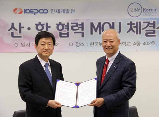 [천지일보=최유라 기자] 한국뉴욕주립대학교(총장 김춘호)는 지난 12일 한전 인재개발원(원장 허경구)과 인적자원개발(HRD) 분야를 합력하고자 산학협력 양해각서를 체결했다.