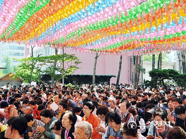 ▲ ⓒ천지일보(뉴스천지) [천지일보=김지연 기자] 불기 2559년 부처님오신날인 25일 서울 조계사를 비롯한 전국 사찰에서 봉축 법요식이 봉행됐다. 이날 조계사에서 불자들이 식순에 따라 합장하며 함께하고 있다.