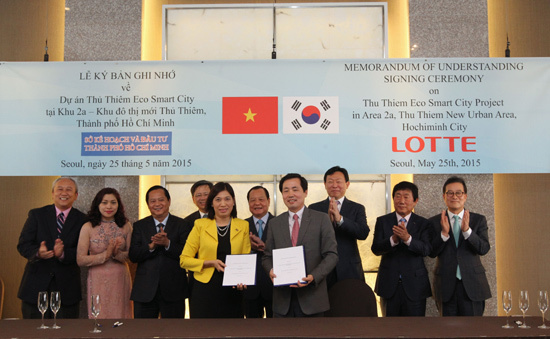 롯데그룹은 호찌민시 투티엠 지구 10만여㎡ 규모 부지에 2조원을 투입해 2021년까지 복합쇼핑몰과 주거시설로 구성된 ‘에코스마트시티’를 개발할 예정이다.