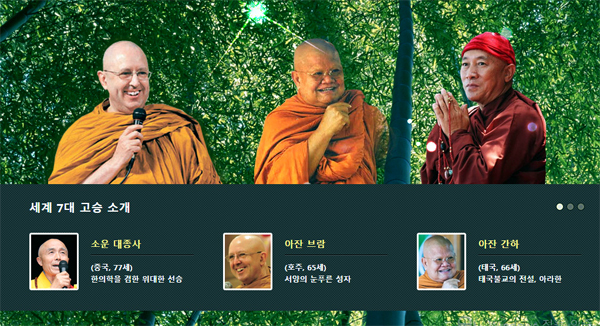 [천지일보=박준성 기자] 세계 고승들이 한국에서 명상을 지도하는 법석이 마련됐다. 2015 세계 7대 성자 명상대전 조직위원회는 내달 1일 정오 서울 프레스센터에서 기자간담회를 열고 국제명상캠프 홍보에 나선다. 사전 배포된 조직위 자료에 따르면 이번 국제명상캠프에는 한국을 비롯해 중국, 대만, 티베트, 호주, 태국, 미얀마 등 세계 7개 나라에서 추앙받는 스님들 7명이 초청됐다.