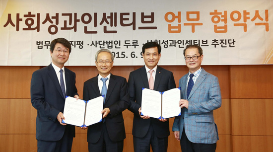 9일 SK그룹에 따르면 사회성과인센티브추진단과 법무법인 ‘지평’, 공익법인 ‘두루’는 9일 서울 종로 SK서린사옥에서 프로젝트에 참여한 35개 사회적기업이 경영상 필요한 법률적 문제에 대해 상담·지원해 주는 내용의 업무협약서를 체결했다.