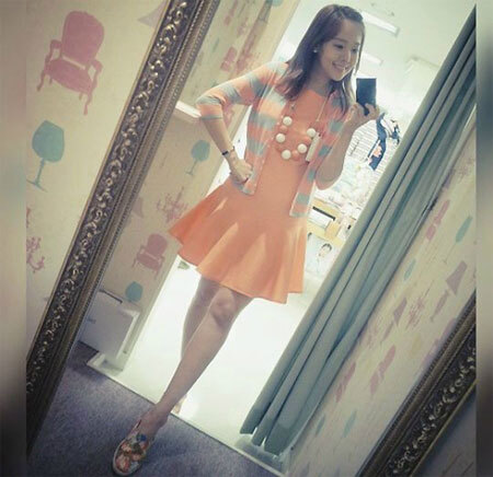 소유진은 지난 9일 자신의 인스타그램에 주황색 미니 원피스를 입은 모습을 공개했다.