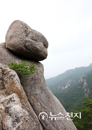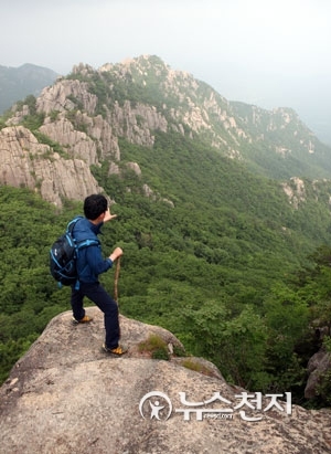 다행히 이곳 바위들은 대체로 둥그스름한 형태를 띤다. 네모 형이라도 결코 뾰족하지 않다. 그만큼 날씨와 체력만 잘 받쳐 준다면 오를 만한 산이 성주팔경 중에 제1경인 만물상이다. 계절마다 다른 옷을 입는 산이라지만, *녹음(綠陰)이 짙은 여름에는 그 많던 바위가 수풀에 숨었다고 할지라도, 이번에 답사팀이 오른 만물상은 참으로 오를 만한 산이었다.