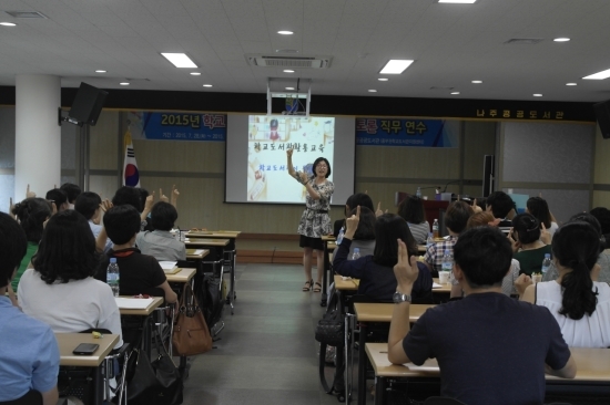 나주공공도서관은 지난달 28일부터 30일까지 도내 초·중·고 교사와 공공도서관 사서, 순회 사서 43명을 대상으로 ‘2015 학교도서관 이용법 교육 및 독서토론’ 직무연수를 개최해 성황리에 마쳤다고 5일 밝혔다.