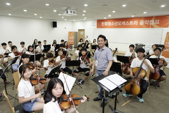 ‘한화 청소년오케스트라 음악캠프’는 한화그룹이 환경적 제약으로 심도 있은 악기 교육을 받기 어려운 충청권 청소년들에게 전문적이고 체계적인 악기교육 실시해 악기연주에 대한 즐거움을 느끼고 오케스트라 협연을 통해 협동심을 키워 나가는 인성교육프로그램이다.