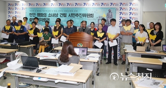 천안 평화의 소녀상 건립 시민추진위원회(상임대표 이윤기, 성공회 신부)는 13일 오전 천안시청 브리핑실에서 기자회견을 열고 오는 12월 10일 세계인권의 날 제막을 목표로 평화의 소녀상 건립을 추진한다고 밝혔다.