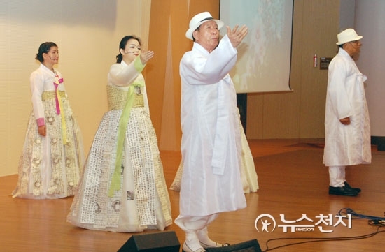 [천지일보=김현진 기자] 시낭송가와 문인들이 광복 70주년을 맞아 광복을 기념하는 동시에 평화통일을 염원하는 ‘평화통일·애국시 낭송예술제’가 14일 국회도서관 대강당에서 열렸다.