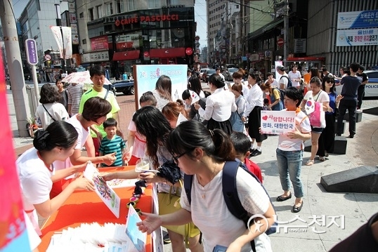 [천지일보 대구=이지수 기자] 신천지 대구교회는 14일 오후 대구 중구 중앙파출소 앞에서 ‘당신도 광복의 주인공이 되어 주세요’ 광복절 평화 캠페인을 대대적으로 펼쳤다.