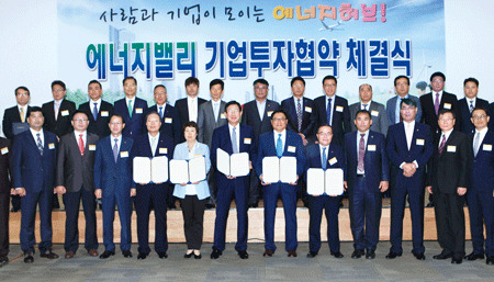 한국전력(사장 조환익)이 8일 본사에서 LS산전 등 25개 기업과 에너지밸리 기업유치 투자협약을 체결했다.