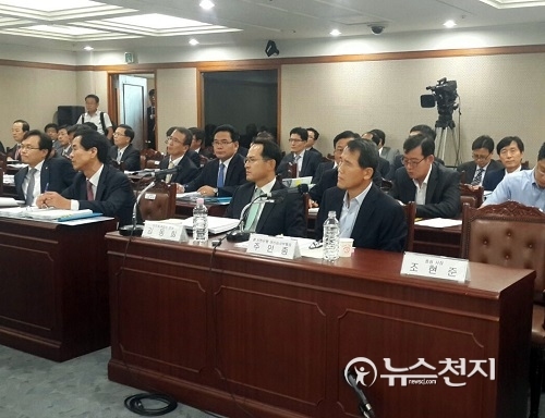 앞서 김 의원은 당시 여신심사그룹 부행장으로 있던 주인종 전 부행장에게는 금융감독원으로부터 경남기업과 관련해 무상감자 내용을 삭제하고 1000억원으로 출자전환을 줄이라는 압력을 받았는지를 물었다. 이에 주 전 부행장이 그런 사실이 없다고 답하자 김 의원은 “이는 검찰 공소장에 나와 있는 사실”이라며 “바로 위증 고발을 추진하겠다”고 밝혔다.
