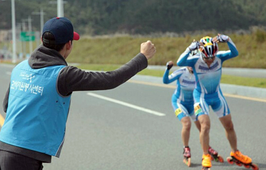 신천지 자원봉사단은 주변 차량통제와 선수 응원 등을 펼쳐 경기에 차질이 없도록 힘썼다. 자원봉사단은 “힘내시고 끝까지 완주하세요”라는 메시지로 참가 선수들을 응원했다.