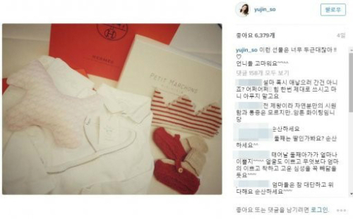 소유진은 최근 자신의 인스타그램을 통해 “이런 선물은 너무 두근대잖아!♡ 언니들 고마워요~^^”라는 감사의 글을 남겼다.