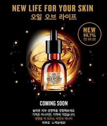 더바디샵이 오는 10월 1일 론칭 예정인 프리미엄 스킨케어 야심작 ‘오일 오브 라이프(OILS OF LIFE)’의 기대평 이벤트를 실시한다고 밝혔다.