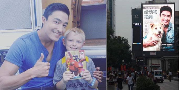 다니엘 헤니는 자신의 인스타그램에 중국에서 진행한 PETA 캠페인의 포스터를 공개했다. 중국 번화가에 게재된 포스터에는 애견과 함께 다정하게 포즈를 취한 다니엘 헤니의 모습을 확인할 수 있다. PETA는 ‘동물을 윤리적으로 대우하는 사람들’이라는 뜻으로 동물의 권리를 보호하기 위한 세계적인 동물 보호 단체다.