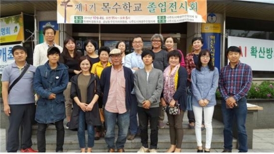 나주시 도시재생지원 센터(센터장 조진상)는 지난 7월 주민공모사업의 하나로 시작한 제1기 목수학교 수강생들이 4일 금남동주민센터 앞에서 오전 11시부터 오후 5시까지 작품전시회와 함께 수료식을 했다고 5일 밝혔다.