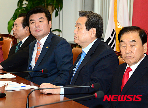 새누리당 김무성 대표는 7일 최고중진연석회의에서 “현재 중고등학교 역사교과서는 출판사 별로 일관되게 우리 역사를 부정하는 반(反)대한민국사관으로 쓰여 있다. 좌파적 세계관에 입각해 학생에게 민중혁명을 가르치려는 의도로 보인다”고 주장했다.