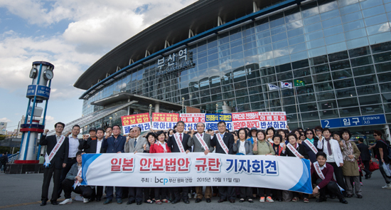 [천지일보=임문식 기자] 부산지역의 평화운동 단체인 부산평화연합은 11일 부산역 광장에서 일본 안보법안 규탄 기자회견을 열고 집단적자위권 등이 포함된 일본 안보법안 폐지를 촉구하고 나섰다.