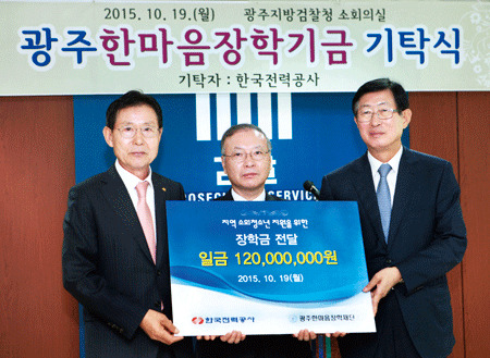 이날 행사는 한전 조환익 사장, 광주한마음장학재단 박치영 이사장, 김해수 광주지검장 등이 참석한 가운데 광주지방검찰청에서 열렸다.