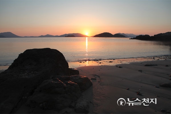 수많은 점처럼 이어지는 섬 연봉 너머로 그 얼굴을 드러낸 남해 일출이 장관이다.