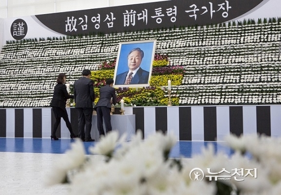 [천지일보 광주=이지수 기자] 광주시가 23일 오전 광주시청 1층 시민숲에 故 김영삼 전 대통령의 분향소를 마련한 가운데 시민들이 분향하고 있다.