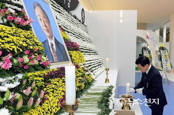 [천지일보 광주=이지수 기자] 윤장현 광주시장은 24일 광주시청 1층 시민숲에 마련된 故 김영삼 전 대통령 분향소에서 시 간부들과 함께 헌화 분향했다.