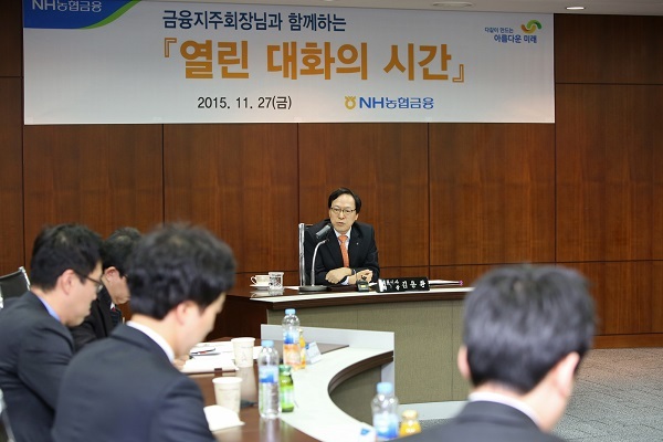 김용환 회장은 대화의 시간을 통해 “치열한 영업현장을 속도감 있게 유연한 자세로 지원할 수 있어야 한다”고 강조하며 “특히 불필요한 형식과 관행의 과감한 개선을 통해 농협금융의 체질을 개선하고, 실무자들이 중심이 되어 급변하는 금융환경에 능동적으로 대응할 수 있도록 변화와 혁신의 아이콘이 되어 달라”고 특별히 주문했다.