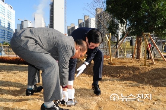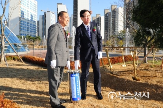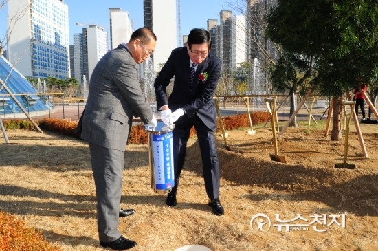 [천지일보 나주=이진욱 기자] 한국전력이 8일 본사 이전 첫돌을 맞아 ‘빛가람 1주년 기념식’을 개최한 가운데 본 행사에 앞서 한전 사옥 앞 기념식수(금송) 근처에 미래 백년을 기약하는 타임 캡슐을 봉인했다.
