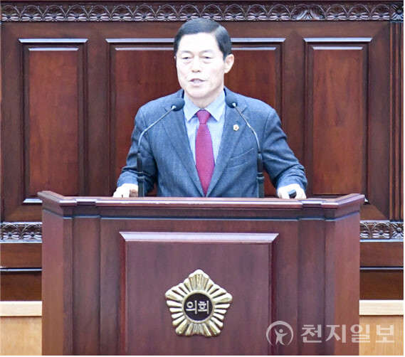 [천지일보 충북=김흥순 기자] 김현문(국민의힘, 청주14) 충북도의원이 24일 오후 의회 본회의장에서 5분 자유발언을 하고 있다.