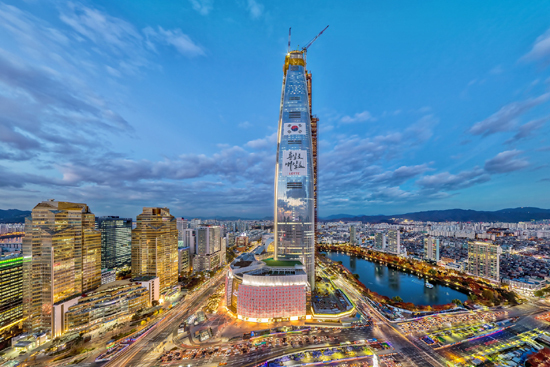 지난 2010년 11월 착공에 들어간 롯데월드타워는 지난해 4월 국내 건축물 최고 높이(305m)를 넘어섰고, 지난 3월에 국내 최초로 100층(413m)을 돌파하며 우리나라 건축사를 새롭게 써 왔다. 현재 롯데월드타워의 구조물 높이(508m)는 우리나라에서 가장 높고 현재까지 완공된 전 세계 초고층 빌딩들과 비교했을 때 5번째로 높은 빌딩이다.